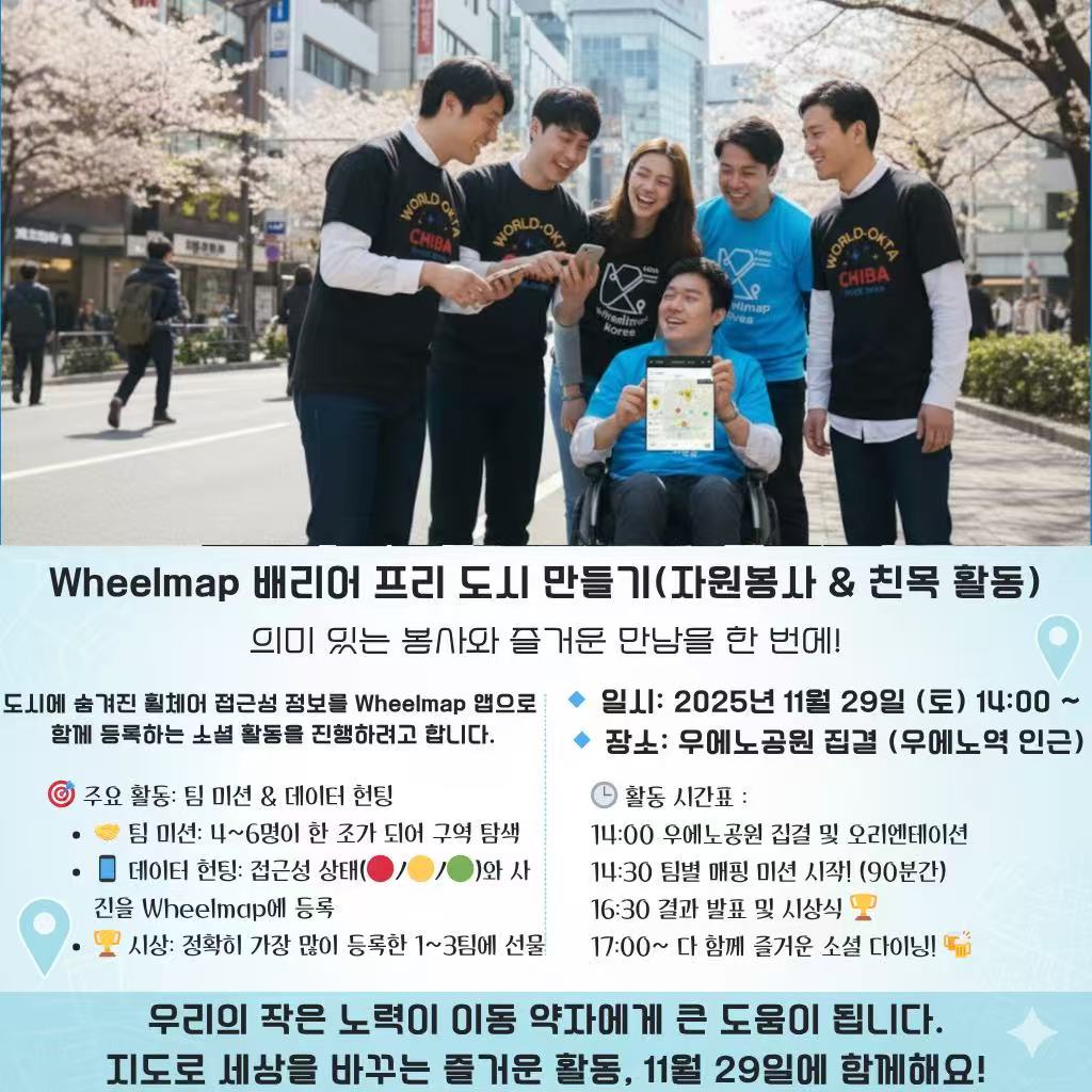 월드옥타 치바지회 차세대위원회는 2025년 11월 29일(토)‘배리어프리 도시 만들기’ 봉사활동을 진행했습니다.