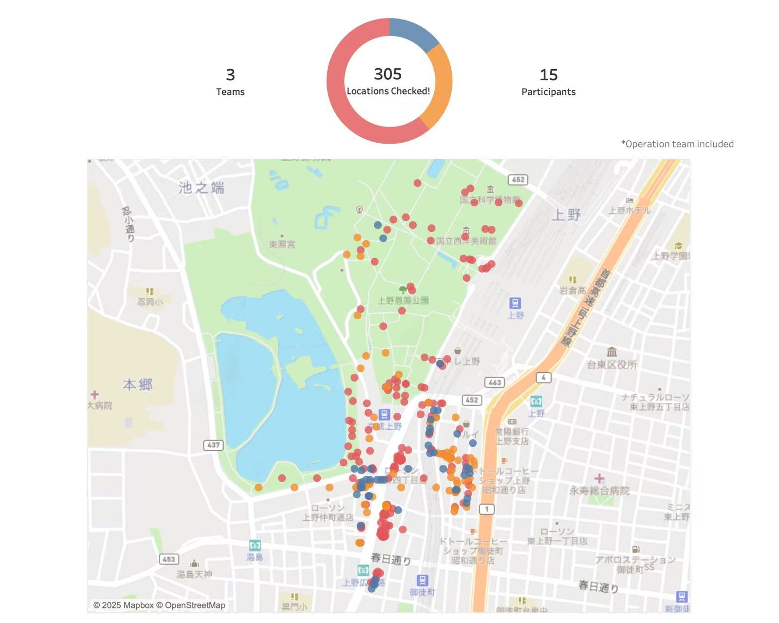 이번 활동은 단순히 접근성 정보를 기록하는 것에서 그치지 않았습니다. 세 팀이 서로 다른 경로로 이동하며 약 한 시간 반 동안 총 305곳의 접근성 정보를 등록하는 성과를 거두었고 그중 2팀이 1위를 차지했습니다. 봉사활동이지만 게임방식으로 경쟁요소를 더해 진행한 덕분에 참가자들은 더욱 집중하게 되었고 모두가 열정을 쏟아 의미있는 결과를 만들어냈습니다.